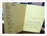 I just wanted to say Thank you for everything you did for me. Thanks for how kind you were to me and for making this painful time as pleasant as possible. People like you are hard to find. I just wanted to say thanks for everything. You are wonderful people. Thank You,